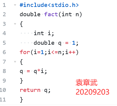 建议定义和调用函数fact(n)计算n!,其中n的类型是int,函数类型是double。