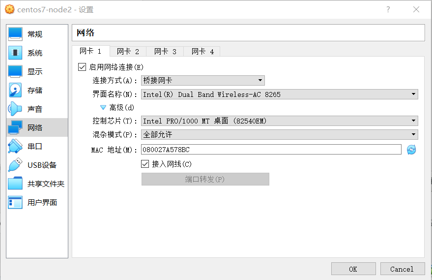 选择桥接方式,高级选项混杂模式选择全部允许,设置后,虚拟机ip为172网段,各虚拟机之间可以互ping