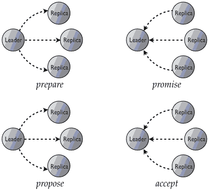 Paxos完成一次写操作需要两次来回,分别是prepare/promise, 和 propose/accept: