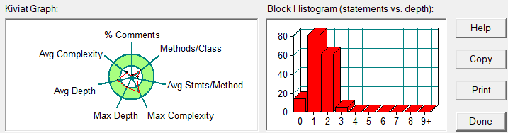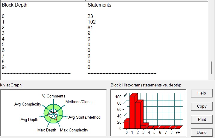 行数和语句数:406 行对应 215 条语句,说明代码行的 “有效密度” 不是特别高,可能存在一些空行或者一行多语句的情况。语句数不算多,意味着整体功能逻辑在语句层面