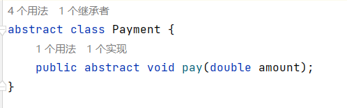 Payment:抽象类,定义支付行为pay方法。