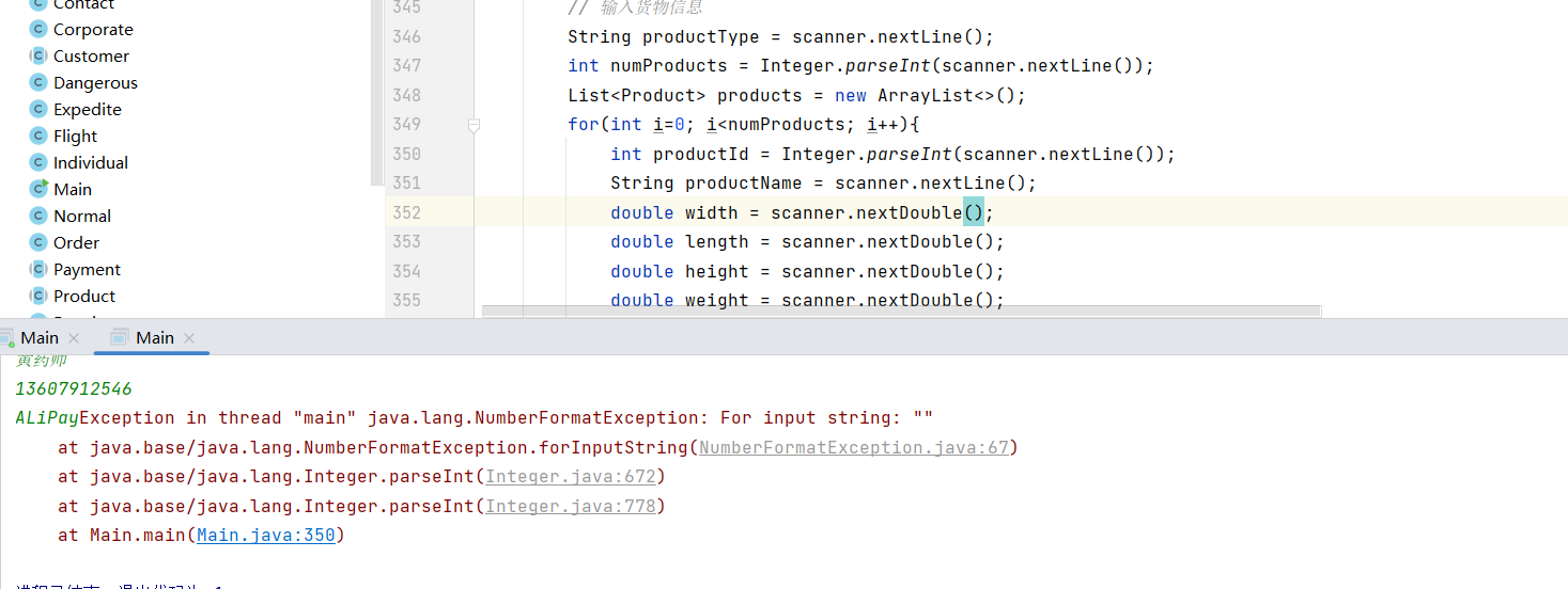 2:只要在 nextInt()、nextDouble() 等方法之后,需要立即使用 nextLine() 读取字符串,就必须先调用 scanner.nextLine() 清除残留换行符,确保输入逻辑正确。一开始,我的代码的运行总会非0返回,这个点卡了我许久,知道后来我才知道是输入格式的问题,除此之外,还可以用Double.parseDouble(scanner.nextLine())的输入方法,也可以改变输入。