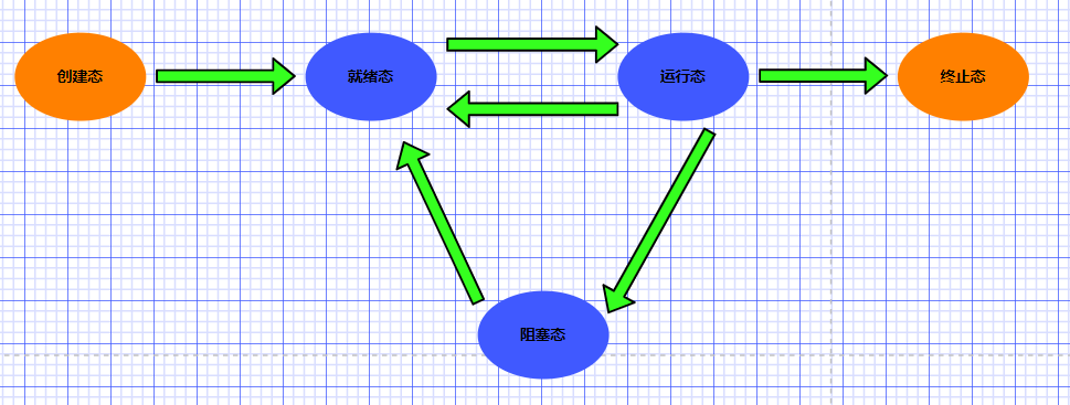 1、创建状态(New,又称:新建态):进程正在被创建,操作系统为进程分配资源、初始化PCB