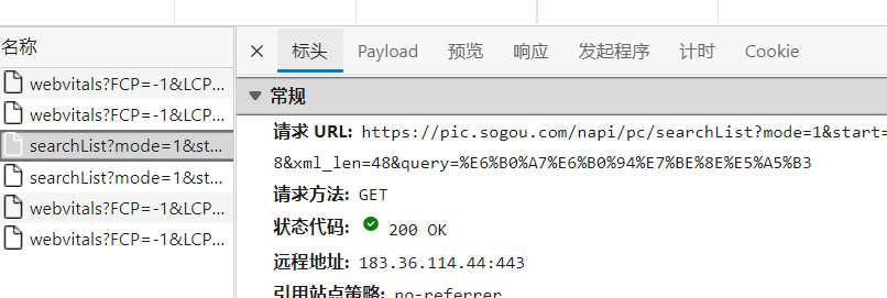 我先说明一下,Sogou是动态加载图片的,需要再分析一下链接。这里需要通过分析XHR。