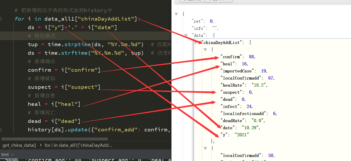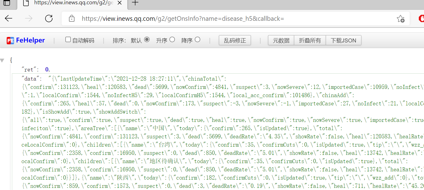 疫情echarts可视化(1) 数据爬取、存储以及取出来