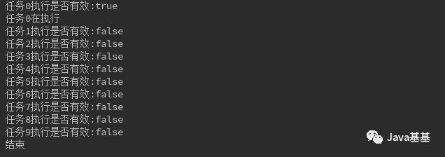 System.out.println("任务" + i + "执行是否有效:" + isValid);