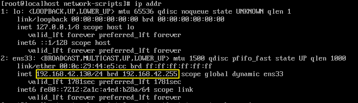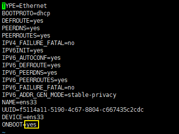 vi /etc/sysconfig/network-scripts/ifcfg-ens33