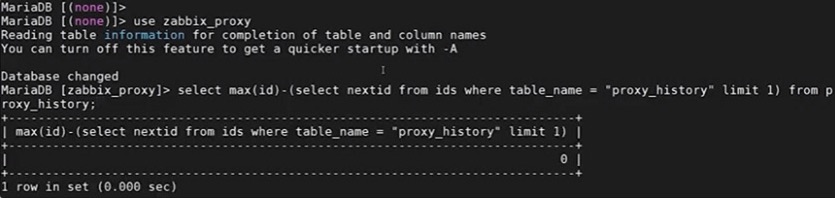 This query will tell us how many values in the proxy database are left that are not yet sent to the Zabbix server. Basically, that’s a backlog queue on the proxy.