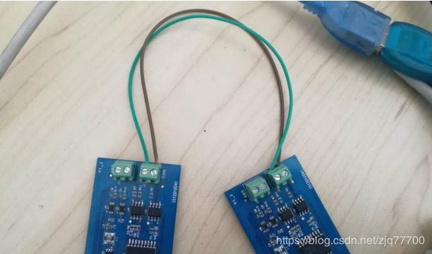 测试 can,使用的是两块迅为4418开发板。需要两选配CAN 总线模块,排母一段接开发板“GPIO/CAN/485”,can 模块的+连接+,-连接-,如下图所示。
