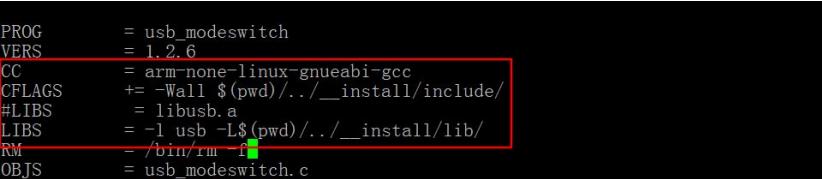__install/lib 文件夹,进入源码文件夹 usb-modeswitch-1.2.6,将 Makefile改成以下所示内