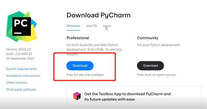 下载地址:http://www.jetbrains.com/pycharm/download/#section=windows