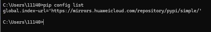 pip config set global.index-url https://mirrors.huaweicloud.com/repository/pypi/simple/