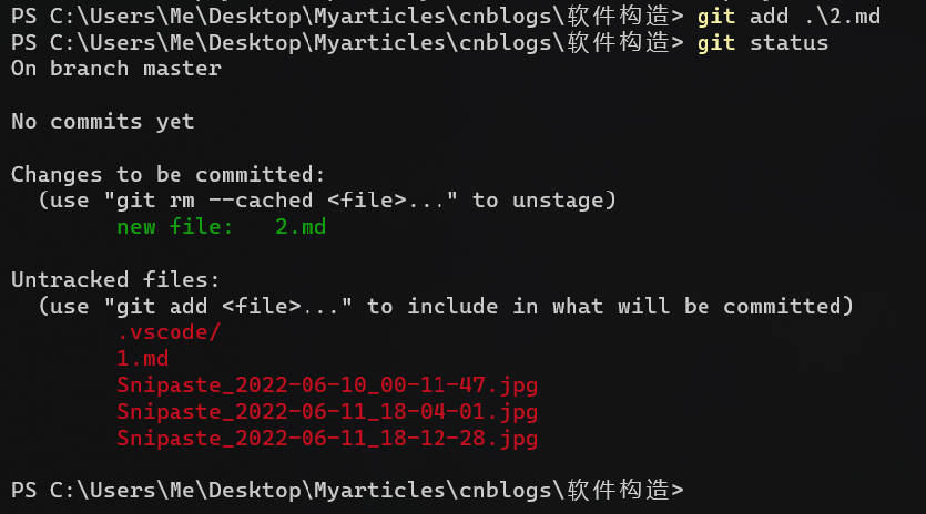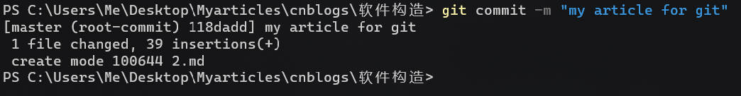 git commit -m "message"("message"中输入本次提交你想要记录的信息)![]()