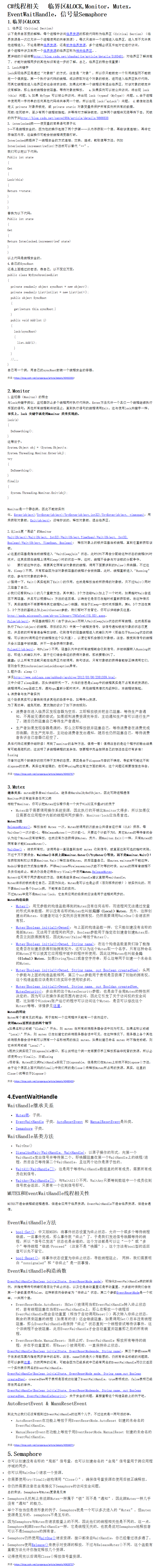 C#多线程控制 临界区&LOCK,Monitor,Mutex,EventWaitHandle,信号量Semaphore