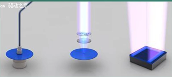光刻(mask上的图案照在光刻胶上):光刻胶层随后透过掩模(Mask)被曝光在紫外线(UV)之下,变得可溶,期间发生的化学反应类似按下机械相机快门那一刻胶片的变化。掩模上印着预先设计好的电路图案,紫外线透过它照在光刻胶层上,就会形成微处理器的每一层电路图案。