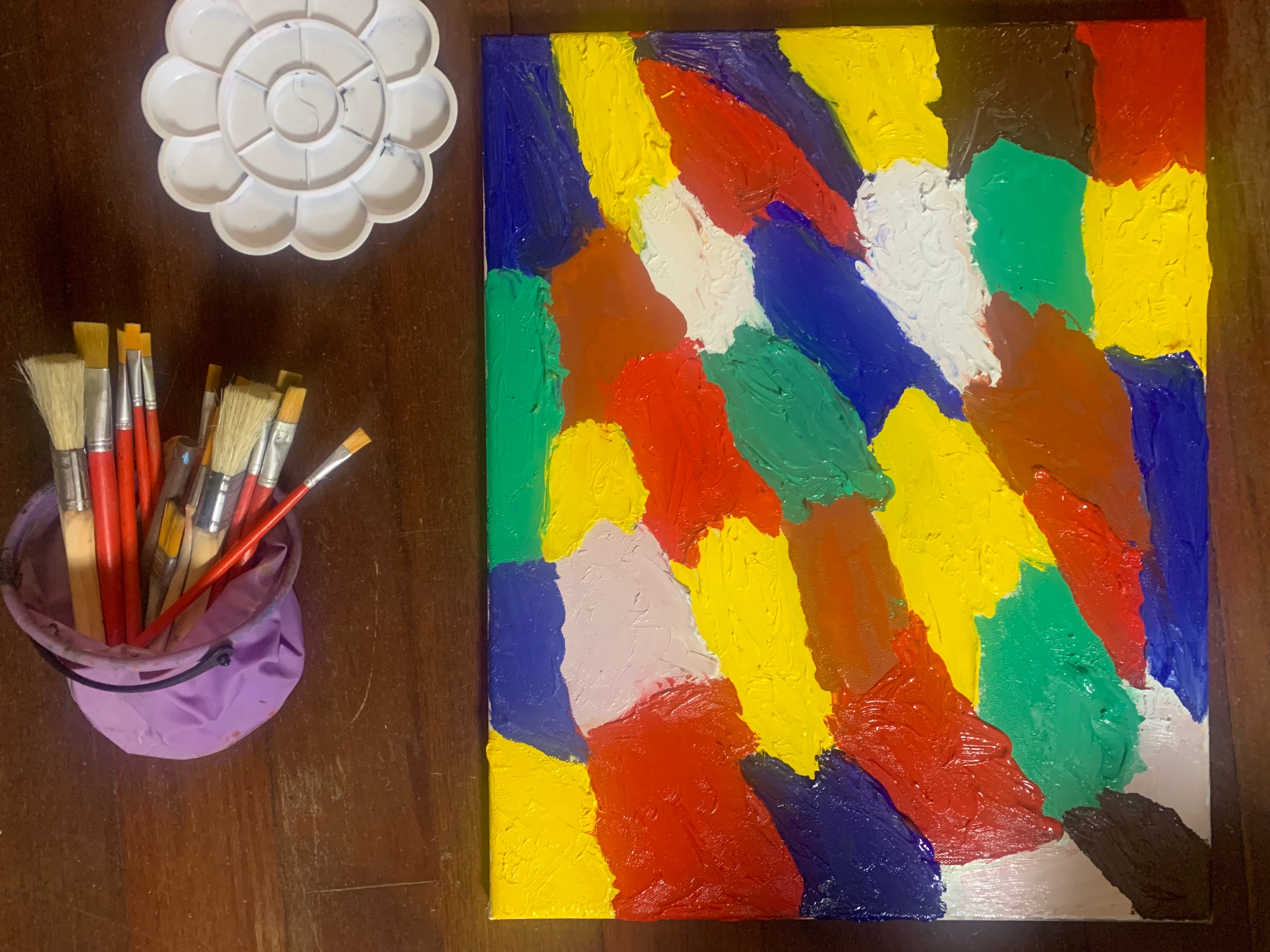 我们的生活被各种忙碌挤满,对于生命意义的问题,反映出人的一种缺失感。 “工具透在生活的方方面面,仿佛一切都只是进入下一步的手段,学习已经脱离了学习,而是取得好的分数,教育退化成培养国家竞争力的工具,艺术的存在,参与艺术本身就是目的,这就是我今天的大作<正月的烟花>,整个创作过程就是投入和构思的过程,不是工具化的过程,经历了过程就到达了彼岸,得到一幅画没有过程是无法到达彼岸的。就像小孩子的“玩”,玩即时动作又是结果,小孩子意义沉浸在“玩”的过程里。