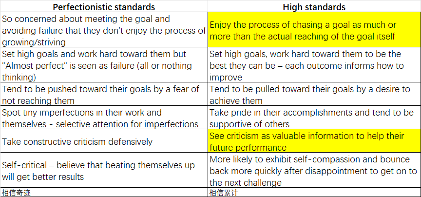 This is how it is when you have perfectionistic standards – you don’t achieve more than people with high standards, but you damage yourself in the process.