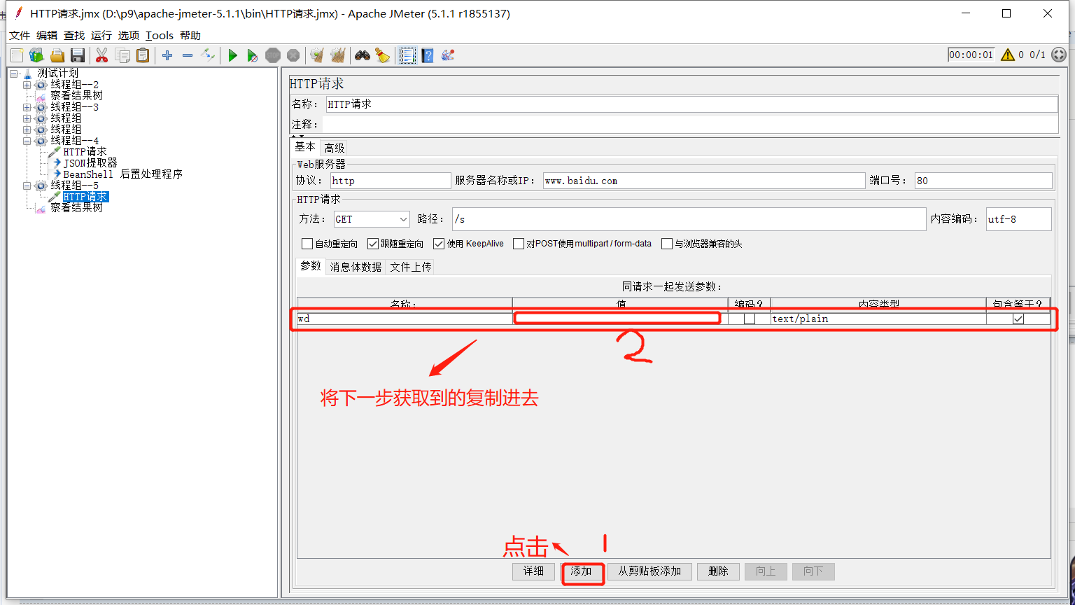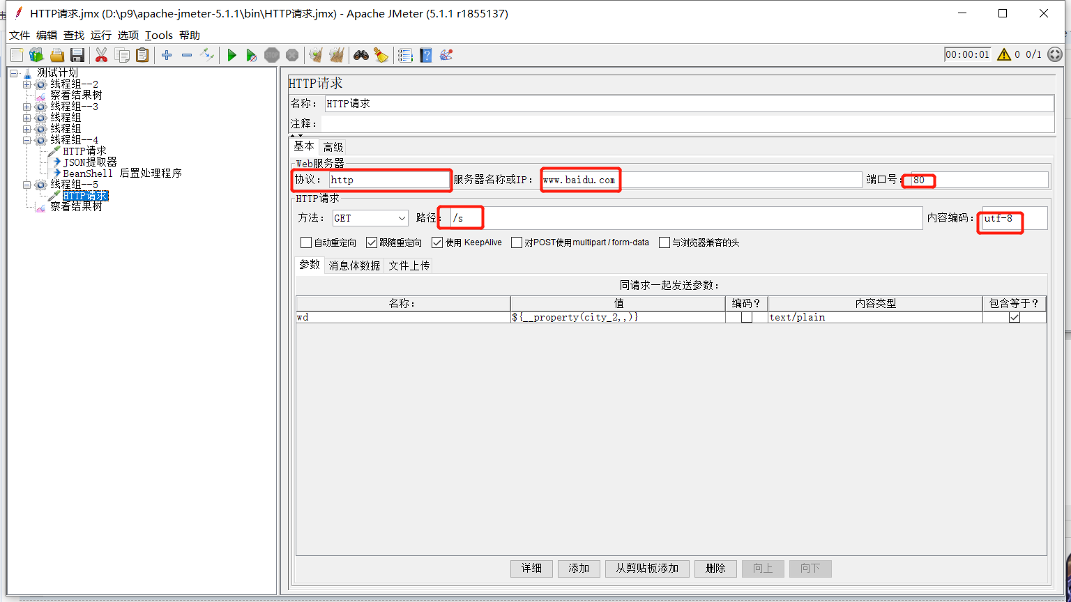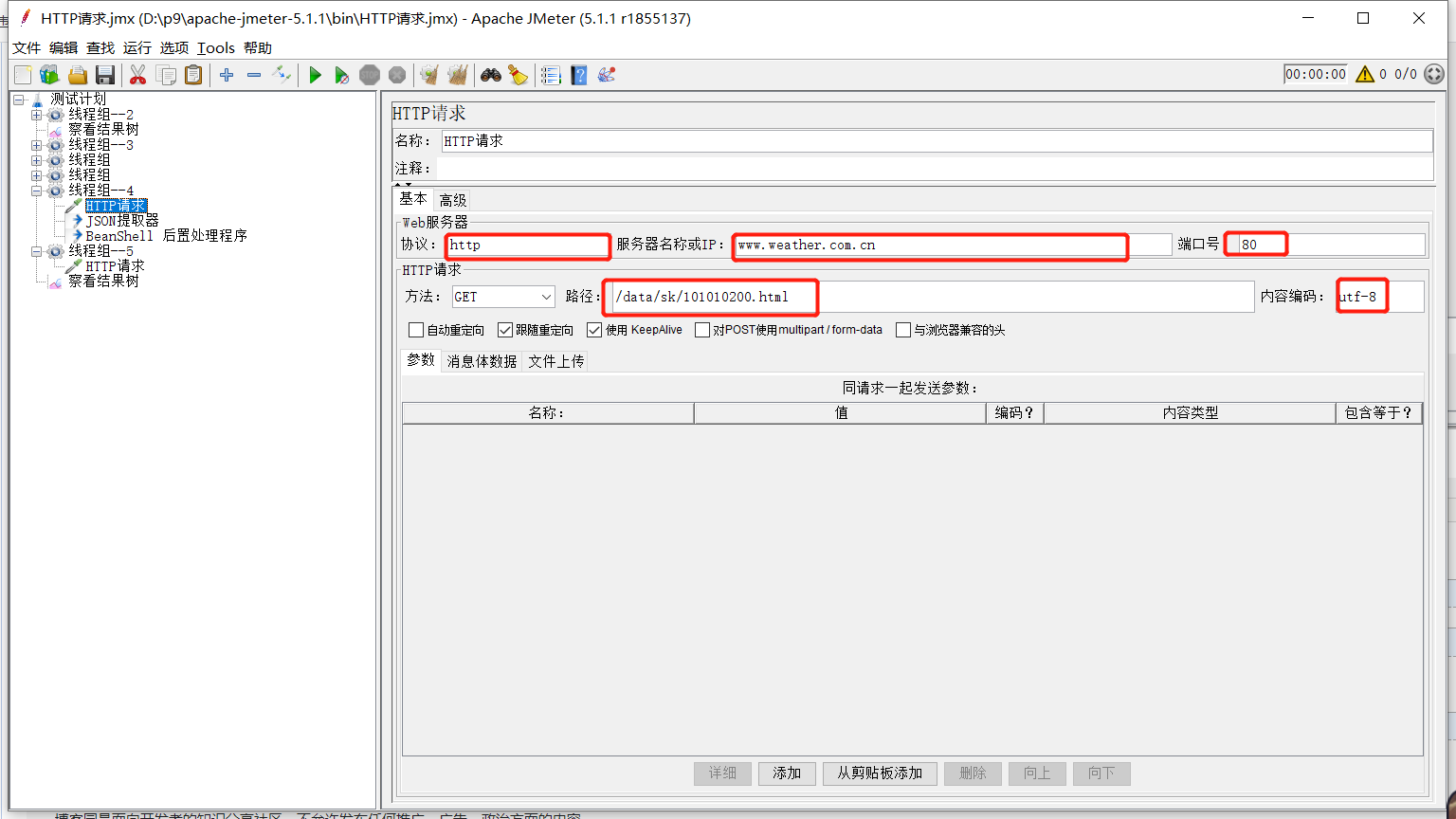 2、添加HTTP请求 ,协议,IP,端口号,路径