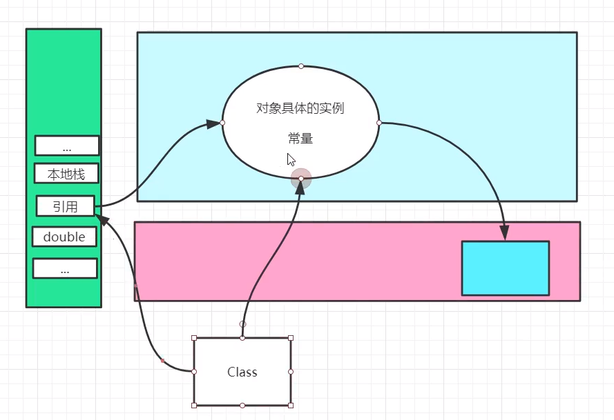 类(具体实例), (类中)方法、(类中)常量,(类中)变量,保存我们所有引用类型的真实对象;
