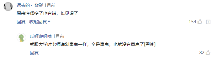3.原来注释多了也有错,长见识了(评论:就跟大学时老师说划重点一样,全是重点,也就没有重点了[黑线])