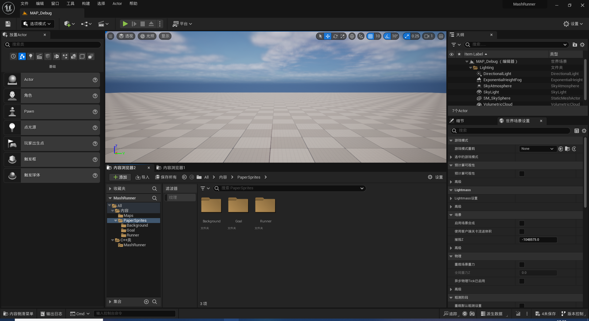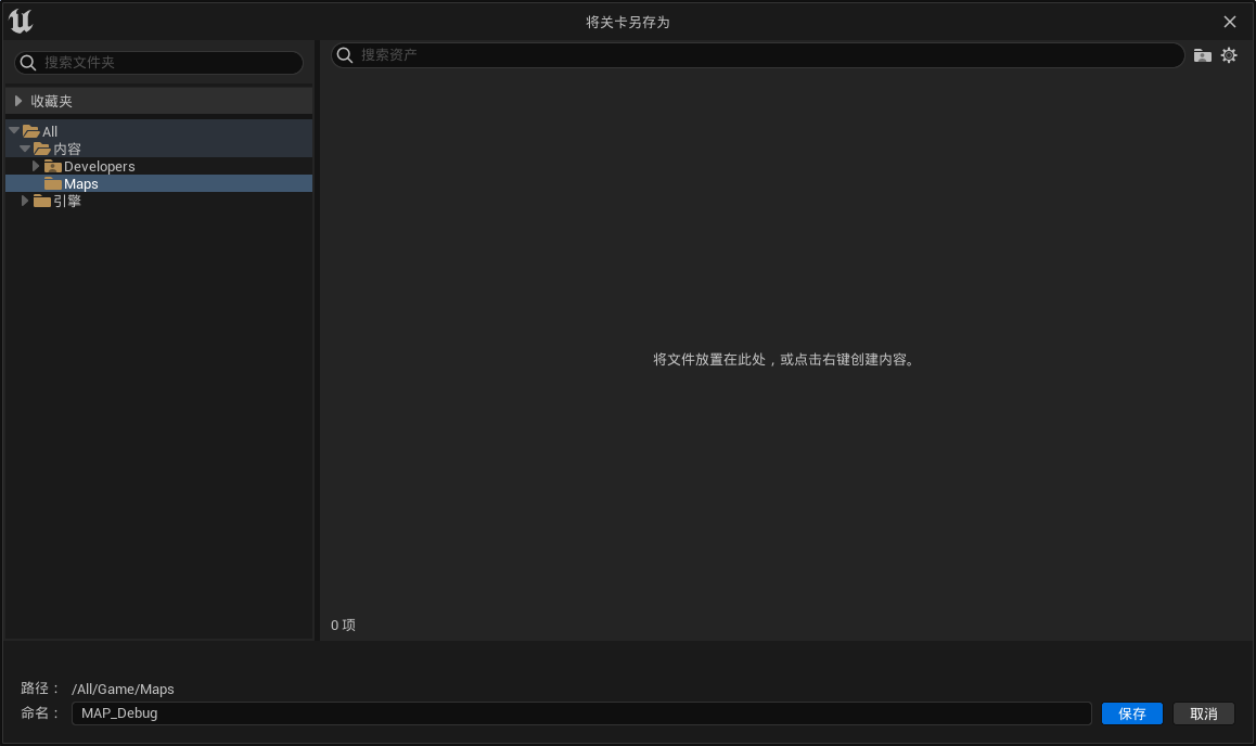 在内容中创建一个文件夹Maps,然后在其中保存当前关卡,命名为MAP_Debug