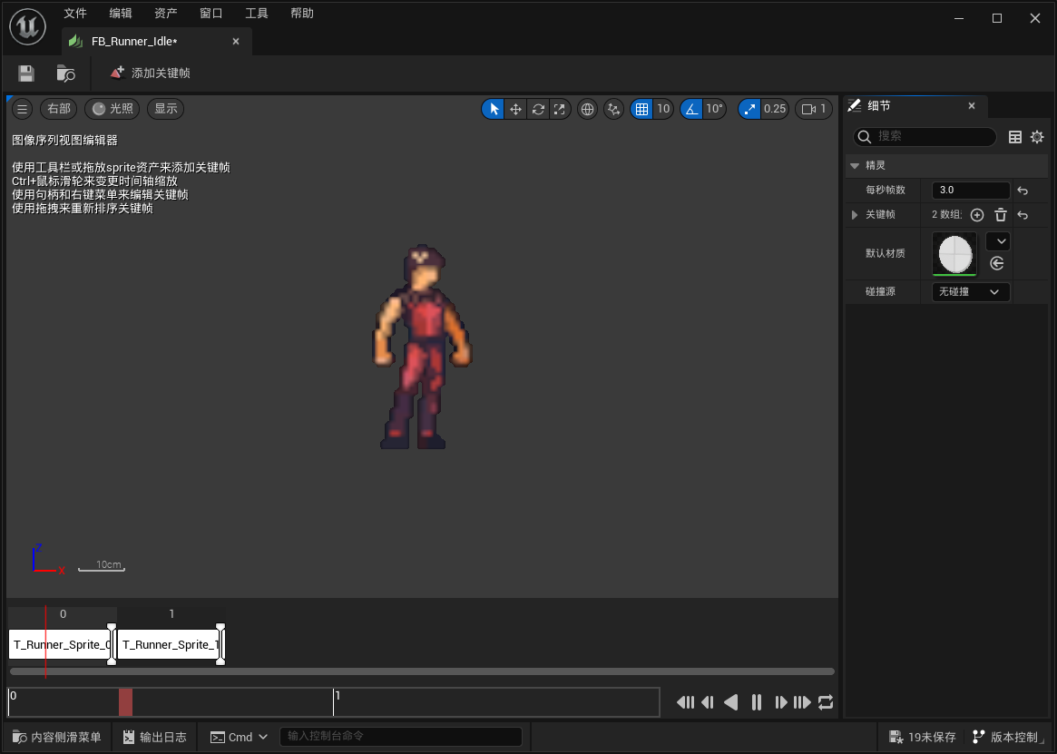 选择0号和1号精灵建立动作书,命名为FB_Runner_Idle,选择剩余的精灵建立动作书,命名为FB_Runner_Run