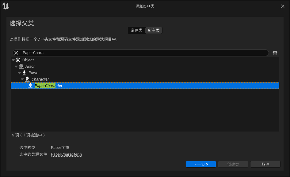 新建一个基于PaperCharacter的C++类,命名为Runner