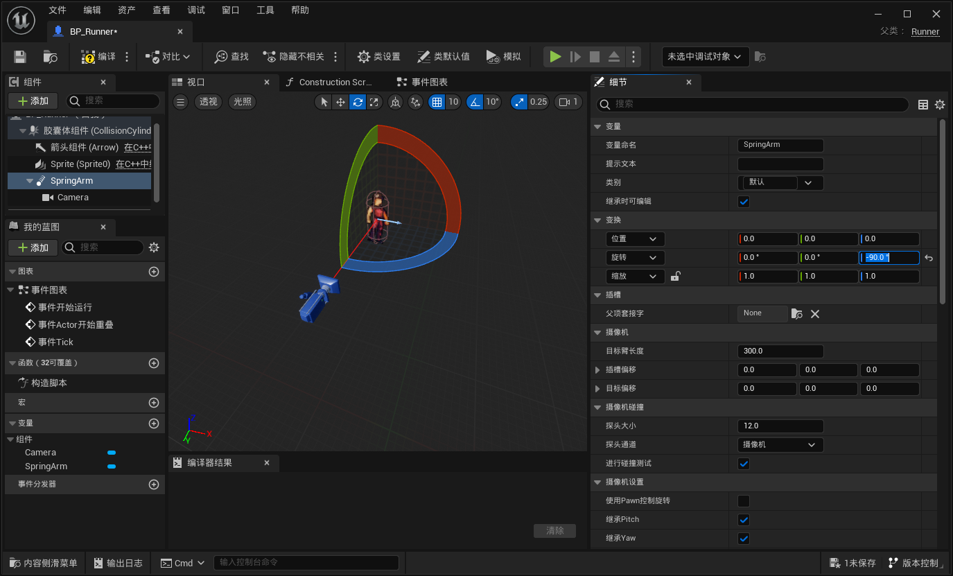 再建立相机和相机杆,调整相机杆的角度。这部分其实都能在C++里做,但我觉得不够直观,最好还是在蓝图里做