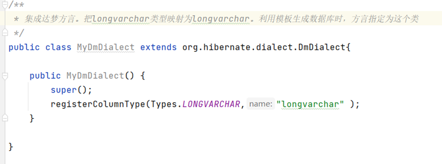 继承达梦的方言,声明SQL中的LONGVARCHAR类型对应”longvarchar”字段