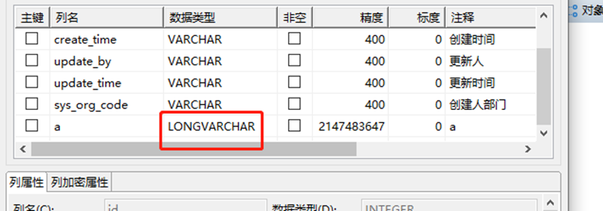 即可生成LONGVARCHAR字段