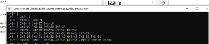 printf("%2d*%d=%2d",j,i,i*j);
