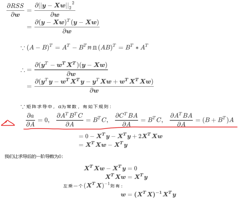 5.最小二乘法:通过最小化真实值和预测值之间的RSS来求解参数的方法。