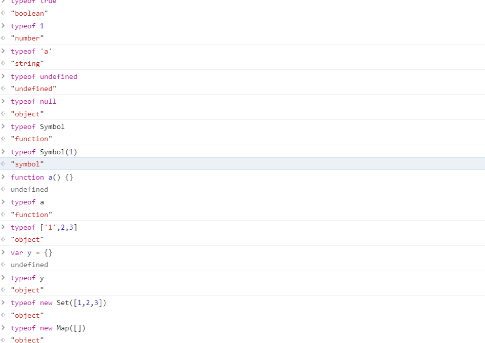 对于类型检测我们常用的方法就是typeof,所以我们先看一下使用typeof来检测各种类型数据的返回值