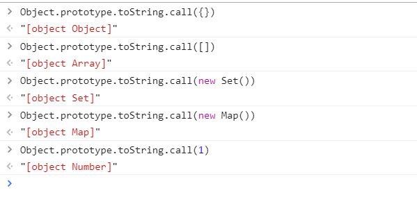 这个时候我们可以使用对象原型上的方法toString方法,对象中的toString返回一个标识类型的字符串,但是我们如果想在检测非对象数据的时候也使用此方法就可以用call来进行调用,即Object.prototype.toString.call()