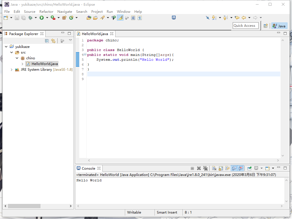 System.out.println("Hello World");