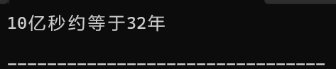 #include <stdio.h> int main() { int year; double year1=1000000000.0/365.0/24.0/3600.0; double year2=year1; while(year2>=1){ year2--; } if(year2>=0.5){ year=int(year1)+1; } else{ year=int(year1); } printf("10亿秒约等于%d年\n", year); return 0; }