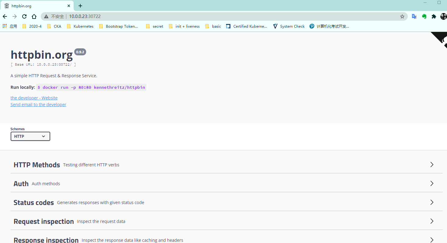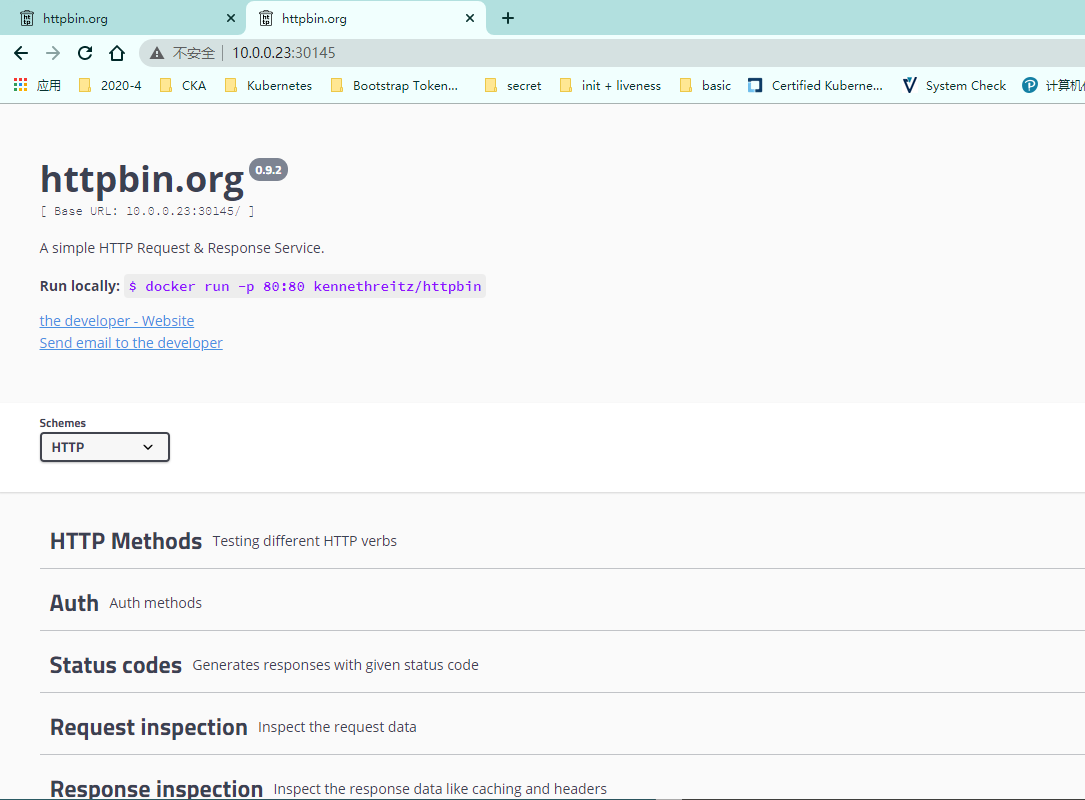 httpbin NodePort 10.105.89.211 <none> 8000:30722/TCP 79s