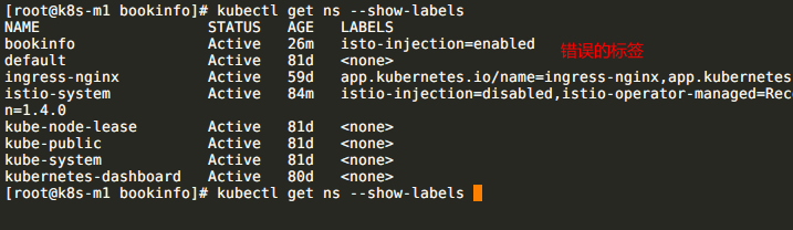 [root@k8s-m1 bookinfo]# kubectl label namespaces bookinfo istio-injection=enabled