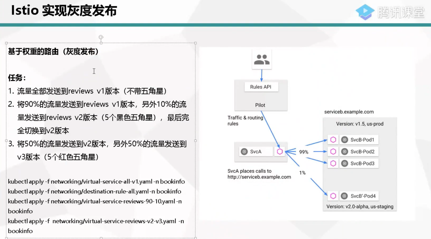 [root@k8s-m1 bookinfo]# kubectl apply -f networking/virtual-service-reviews-90-10.yaml -n bookinfo