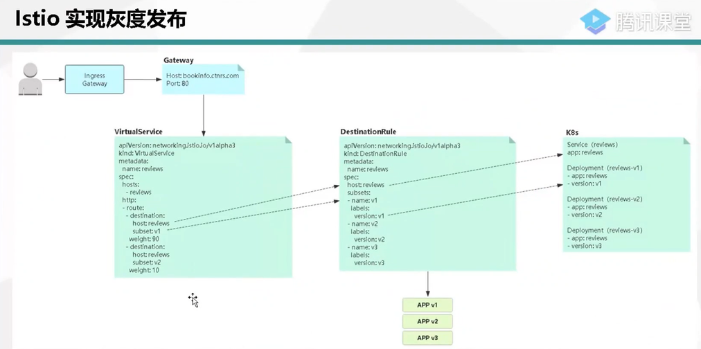 Virtualservice:实现服务请求路由规则的功能。