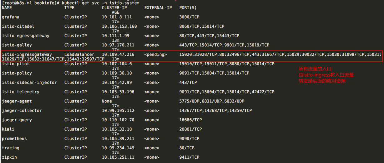 -->istio-ingressgateway(每个节点都有监听端口,接受流量)
