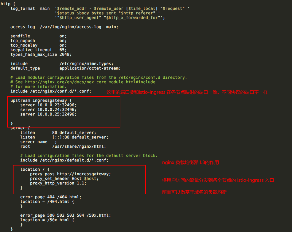 user 访问位于每个节点的istio映射端口 <NodeIP:Port> 该节点做了路由分发。 真正做到负载均衡
