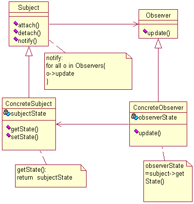 1.当一个对象的状态改变的时候需要同时改变其他对象的时候应该考虑使用观察者模式,当一个抽象模型有2个方面的时候,其中一方面依赖于另外一个方面,这时候观察者模式可以将两者封装在独立的对象中使他们各自独立地改变和复用。其中观察者模式依赖于抽象,并不依赖与具体。