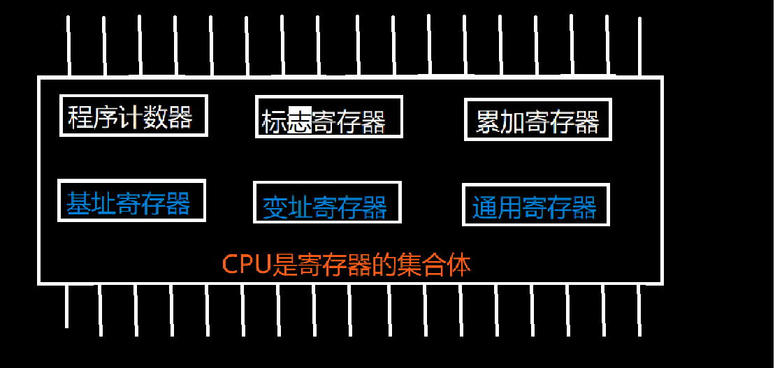 上图中白色字体表示CPU中该寄存器只有一个,蓝色字体代表该寄存器有多个。