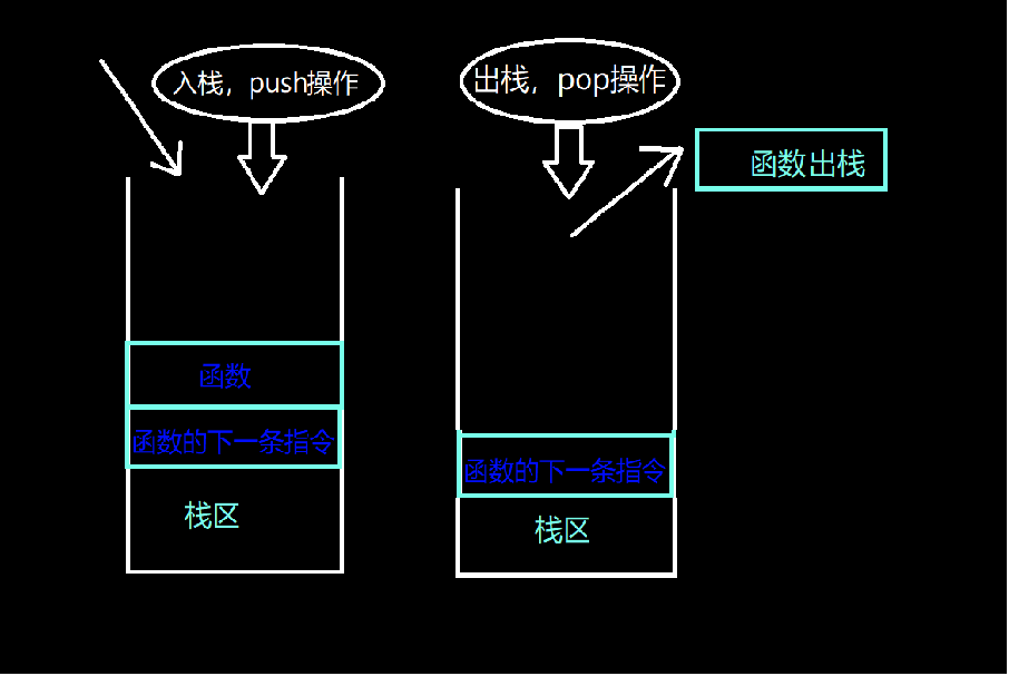 细心的你或许就会发现,跳转指令和函数调用还是有区别的。事实上,在内存中,跳转指令执行的是jump指令,它所要关心的只是所要跳转的地址,而不关心返回的问题。但是函数调用就不一样了,它不仅要关注所要调用的地址,还要有返回的问题,其实,在内存中函数调用执行的是call指令,call指令会先把调用结束后要执行的下一条指令的地址存储在内存的栈里边去,然后根据栈先进后出的特点,函数在调用完毕之后便会从内存中释放掉,也就是所谓的出栈,此时便可以通过函数的出口执行return指令,该指令的作用就是将下一条指令的地址的值设定到程序计数器中。