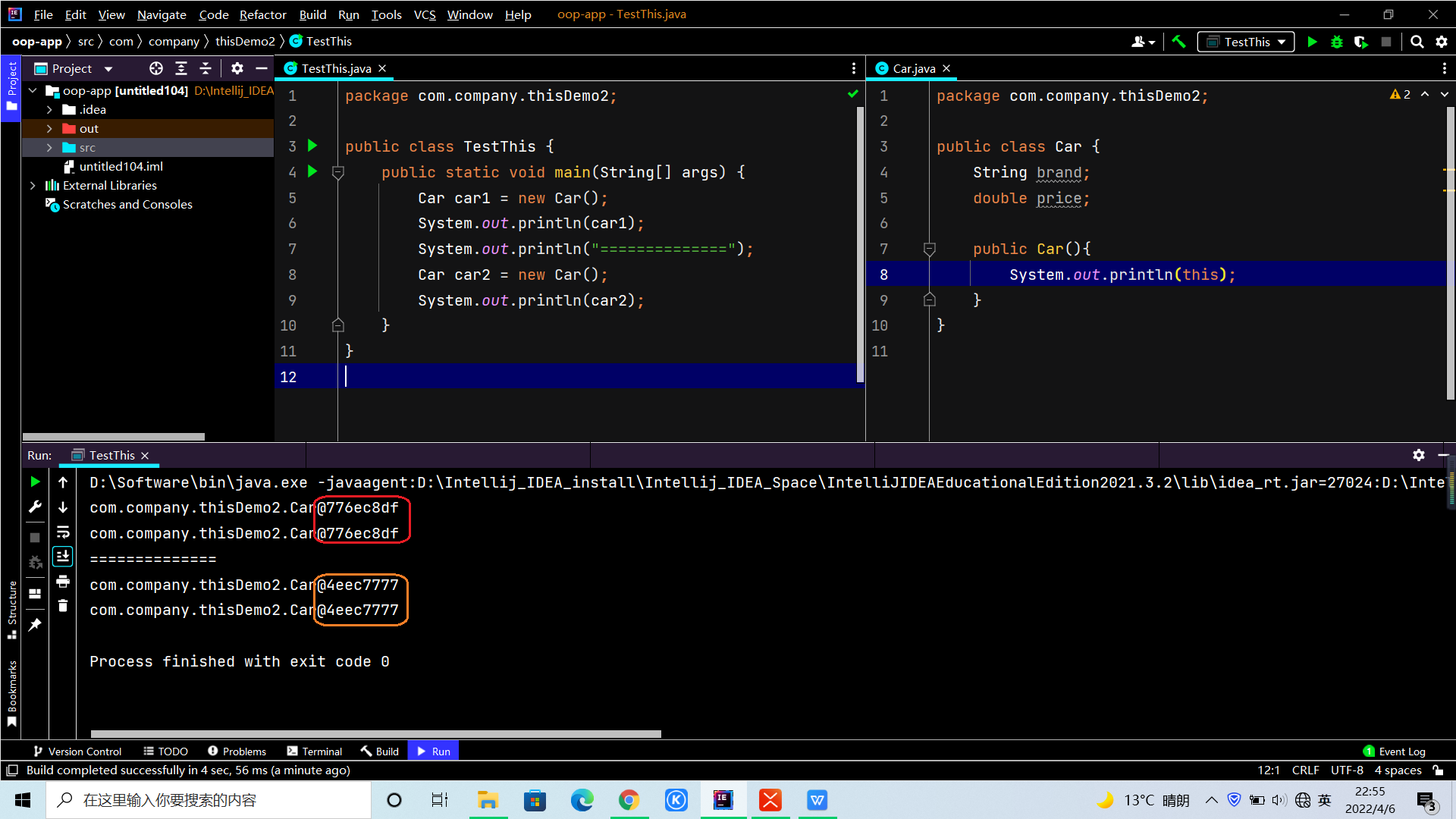 通过无参构造方法中的this可以得出结论:this代表当前对象的地址,即谁调用构造方法,this的地址就指向谁。