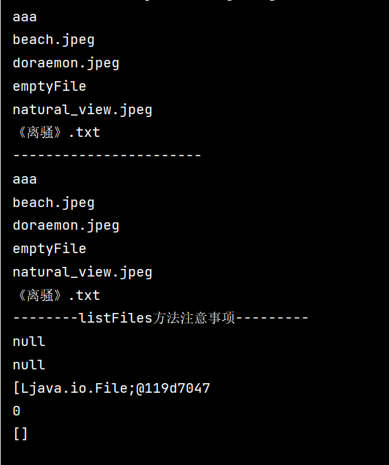 19 System.out.println("--------listFiles方法注意事项---------");