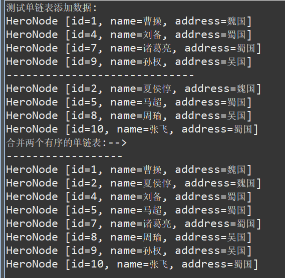 - 案例:定义单链表实现三国英雄任务增删查改以及排序、遍历、合并等操作