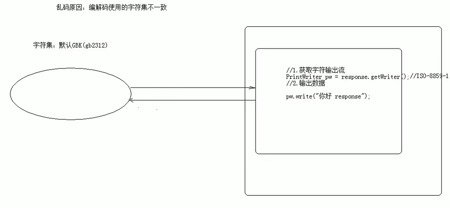 1.PrintWriter pw = response.getWriter(); 获取的流的默认编码是ISO-8859-1,即GBK