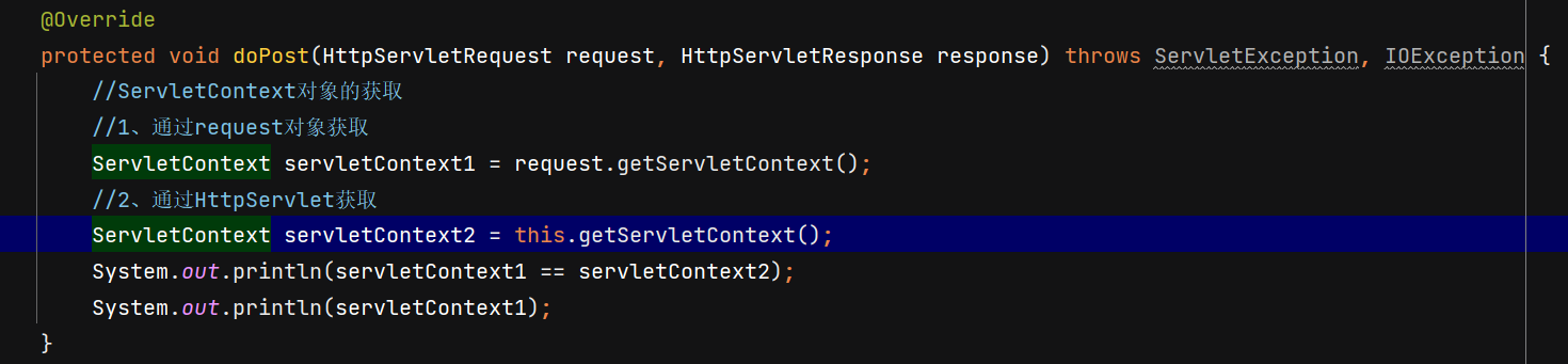 ServletContext对象代表整个Web应用,而改Web应用只有一份,因为:两种不同的方式访问到的对象均为同一个
